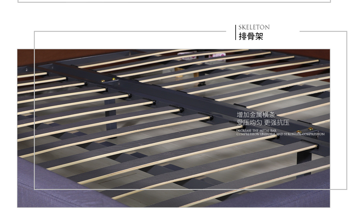 框架材質(zhì):板木結(jié)合。床頭:2.5CM實(shí)木框架、木方,床邊:環(huán)保中纖板