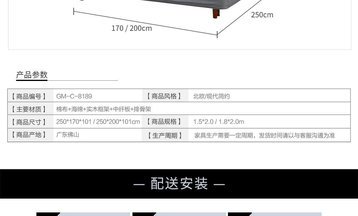 名稱:現(xiàn)代簡(jiǎn)約可拆洗布藝床8189