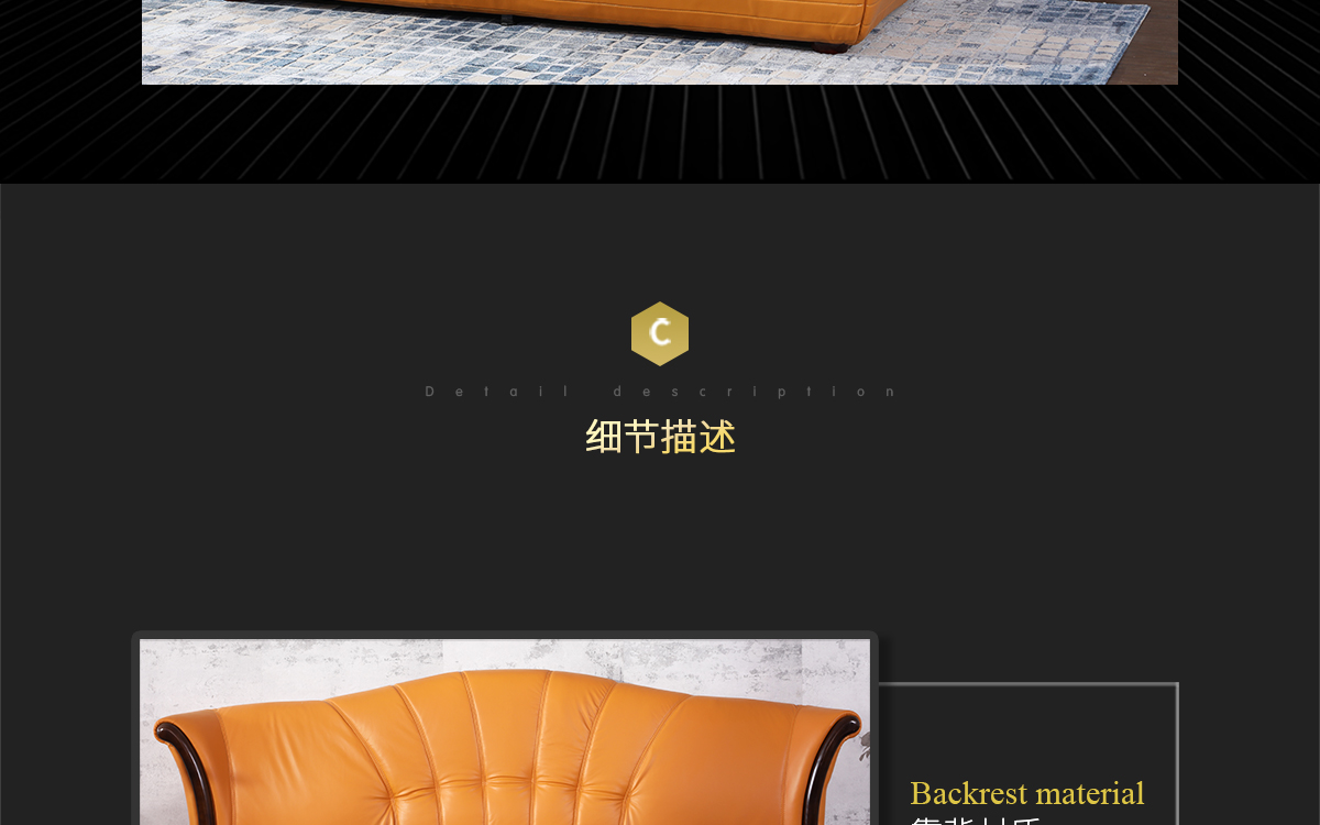 靠背材質:黃牛頭層牛皮靠背填充物:高密度環保定型回彈海綿