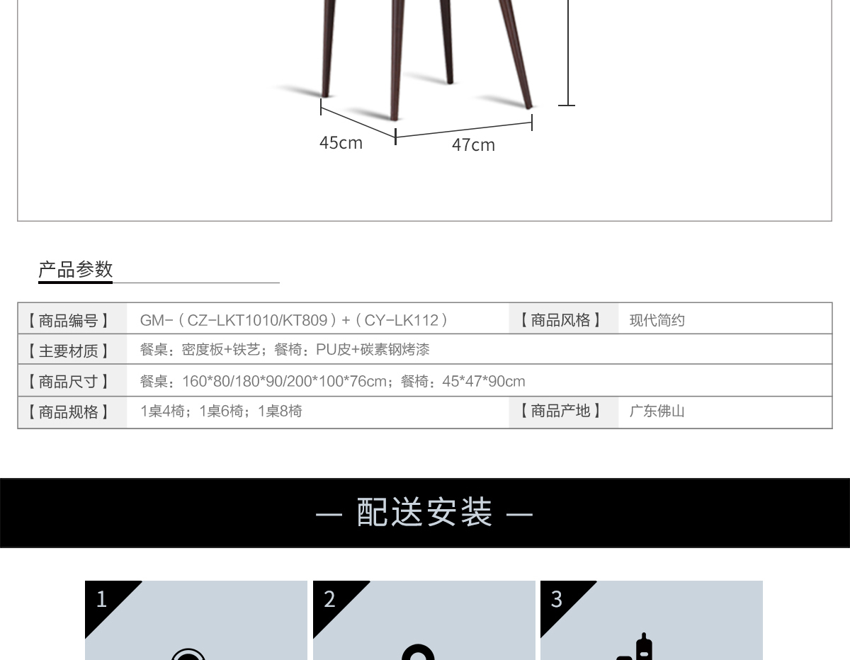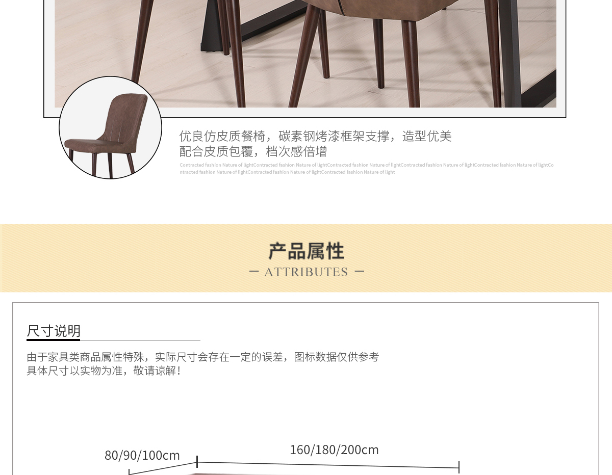 尺寸:餐桌(1600*800*760MM)+餐椅(45*47*90)