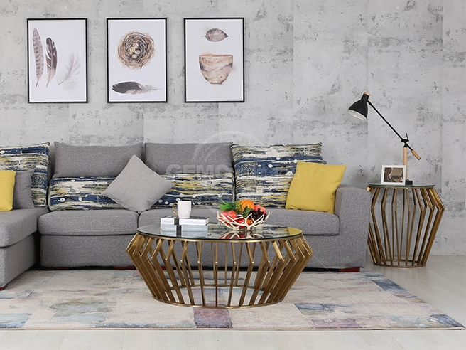 現(xiàn)代創(chuàng)意不銹鋼玻璃茶幾A49