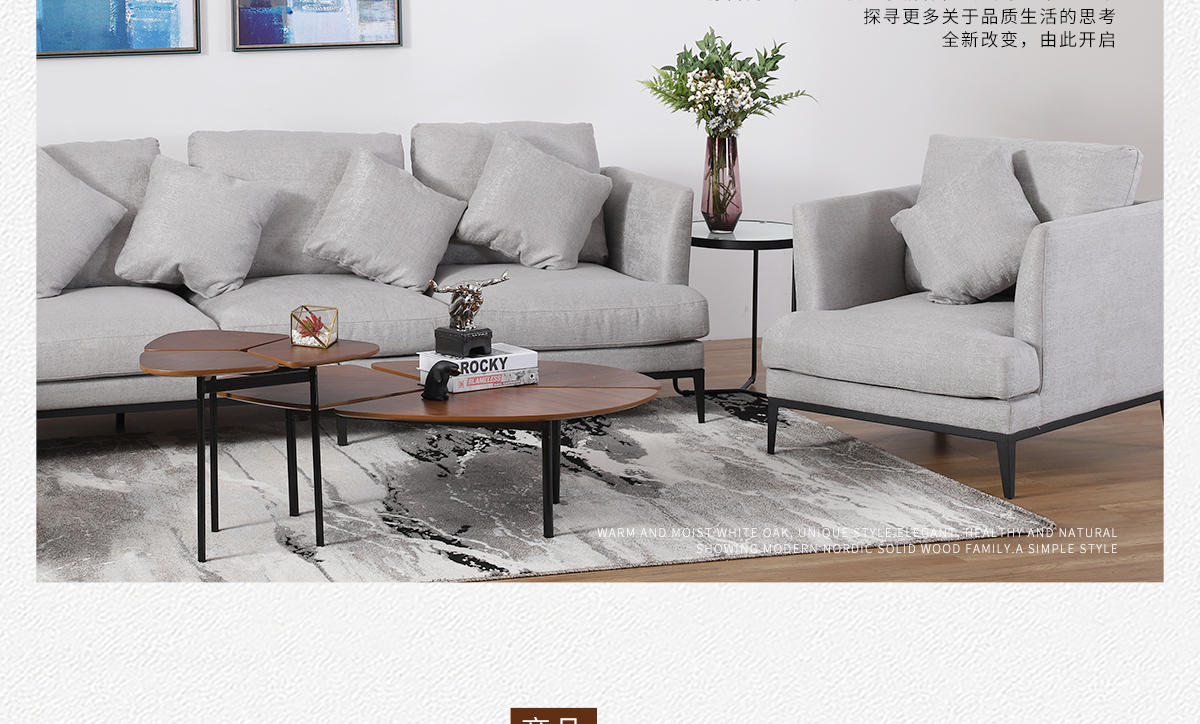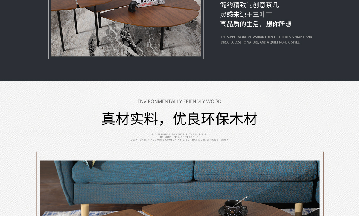 木質北歐胡桃色茶幾118套幾