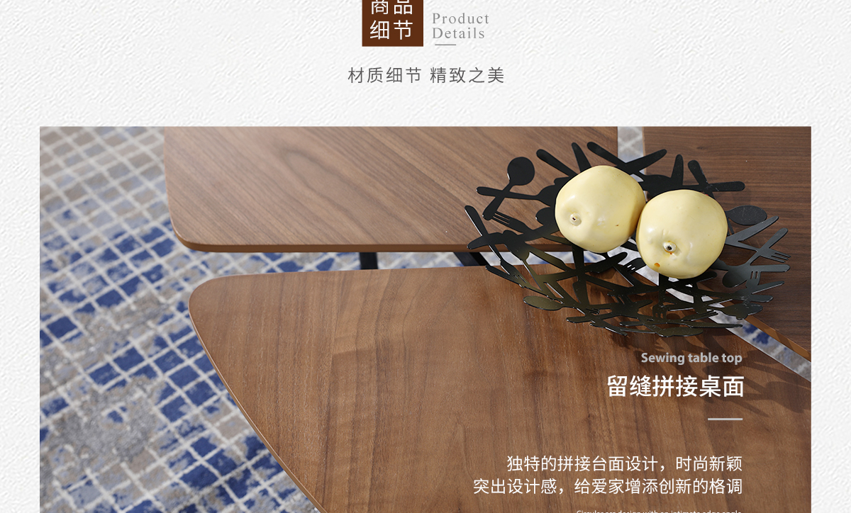 名稱:木質北歐胡桃色茶幾118套幾