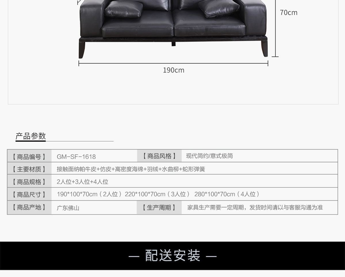 名稱:真皮沙發意式輕奢客廳頭層真牛皮沙發SF1618
