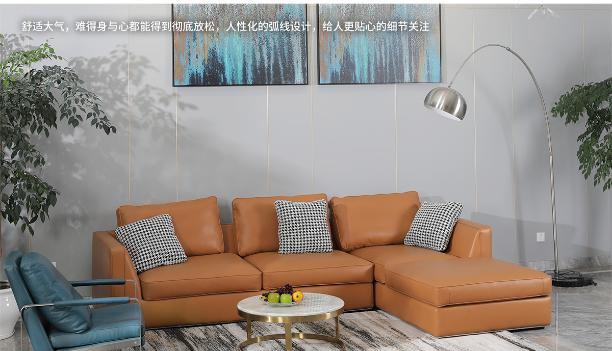 名稱:意式簡約橘色全青牛皮皮質沙發SF1701