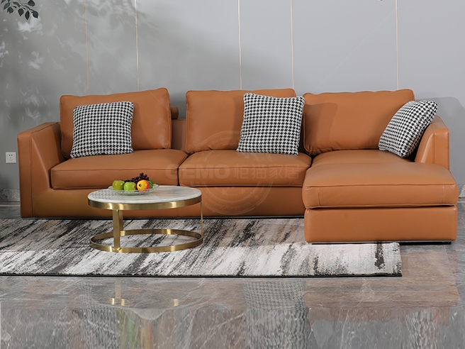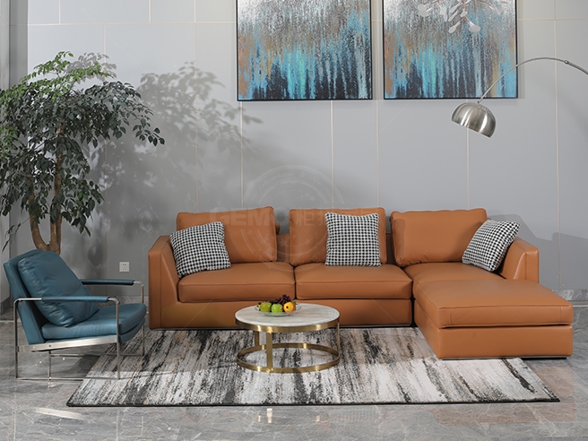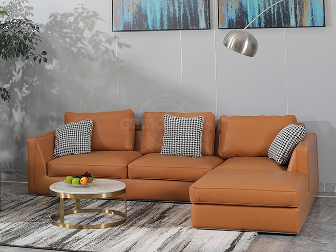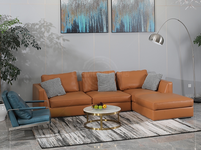 意式簡約橘色全青牛皮皮質沙發SF1701