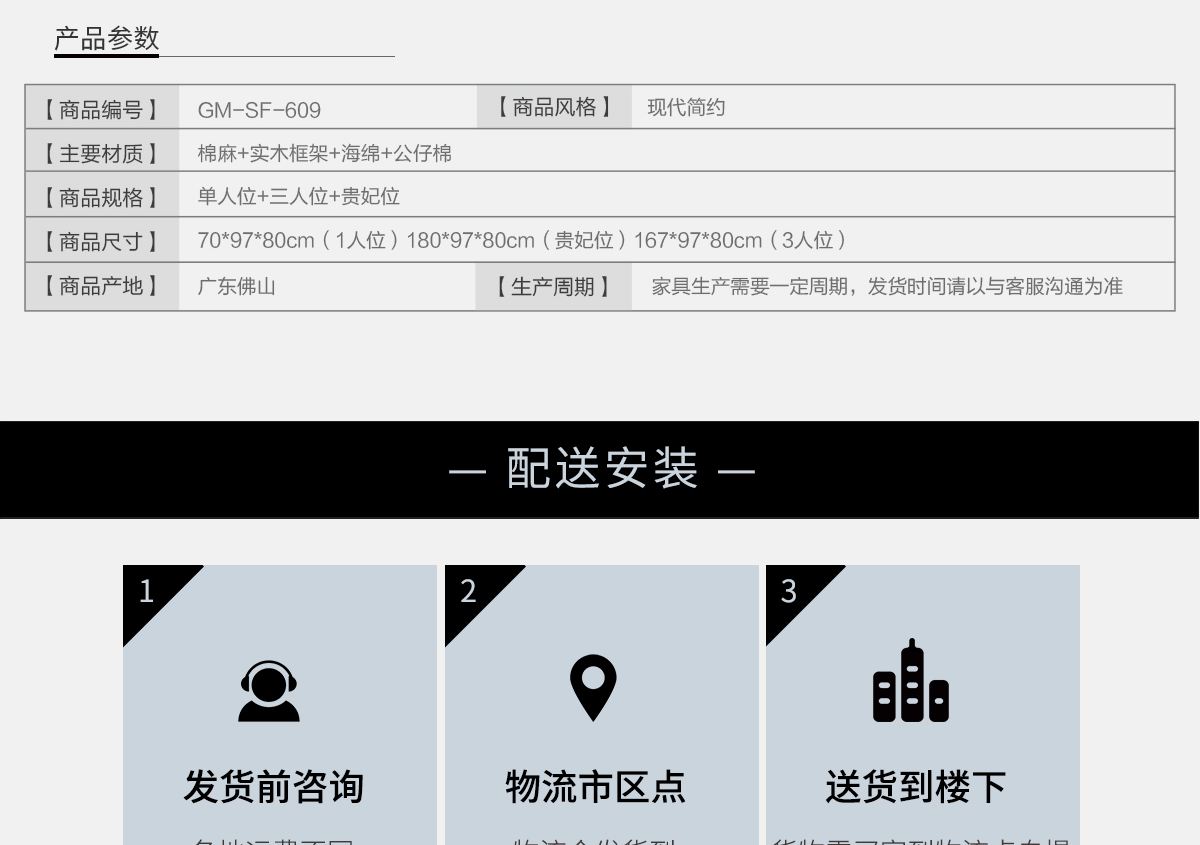 名稱:簡約現代三人位客廳家具整裝套裝布藝沙發SF609