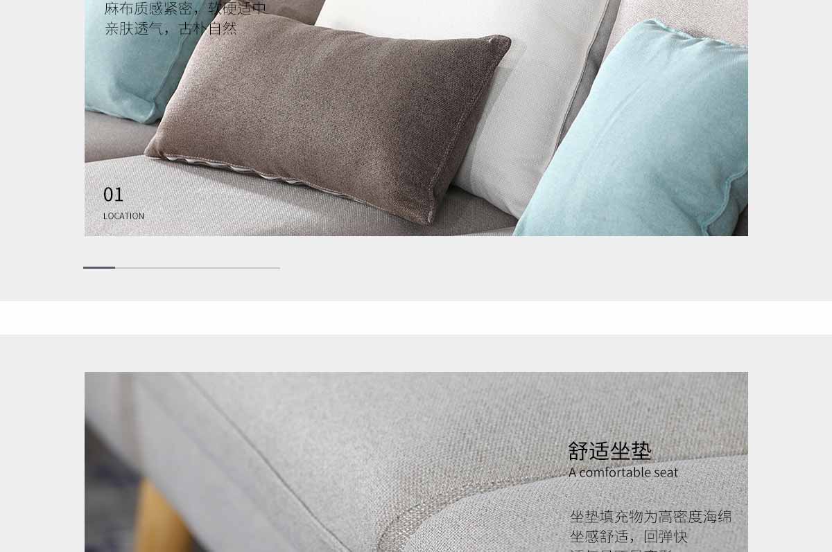 布藝沙發淺灰可拆洗現代簡約SF6806