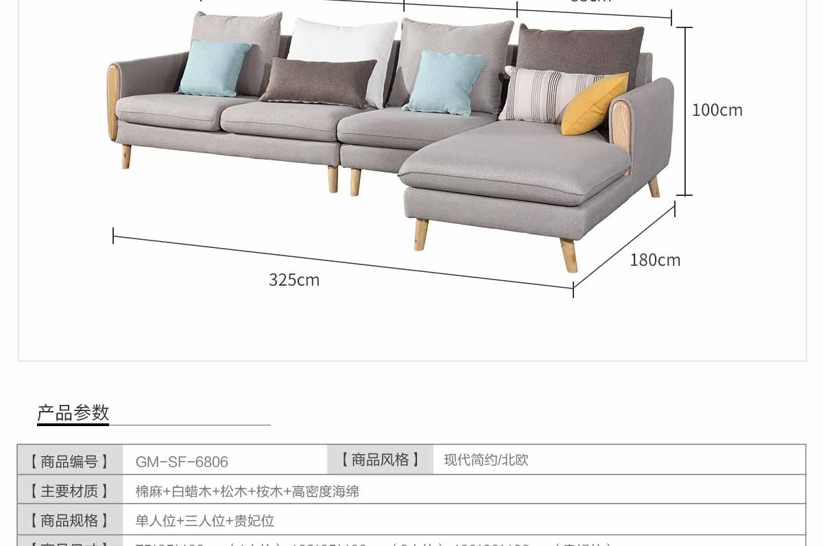 名稱:布藝沙發淺灰可拆洗現代簡約SF6806