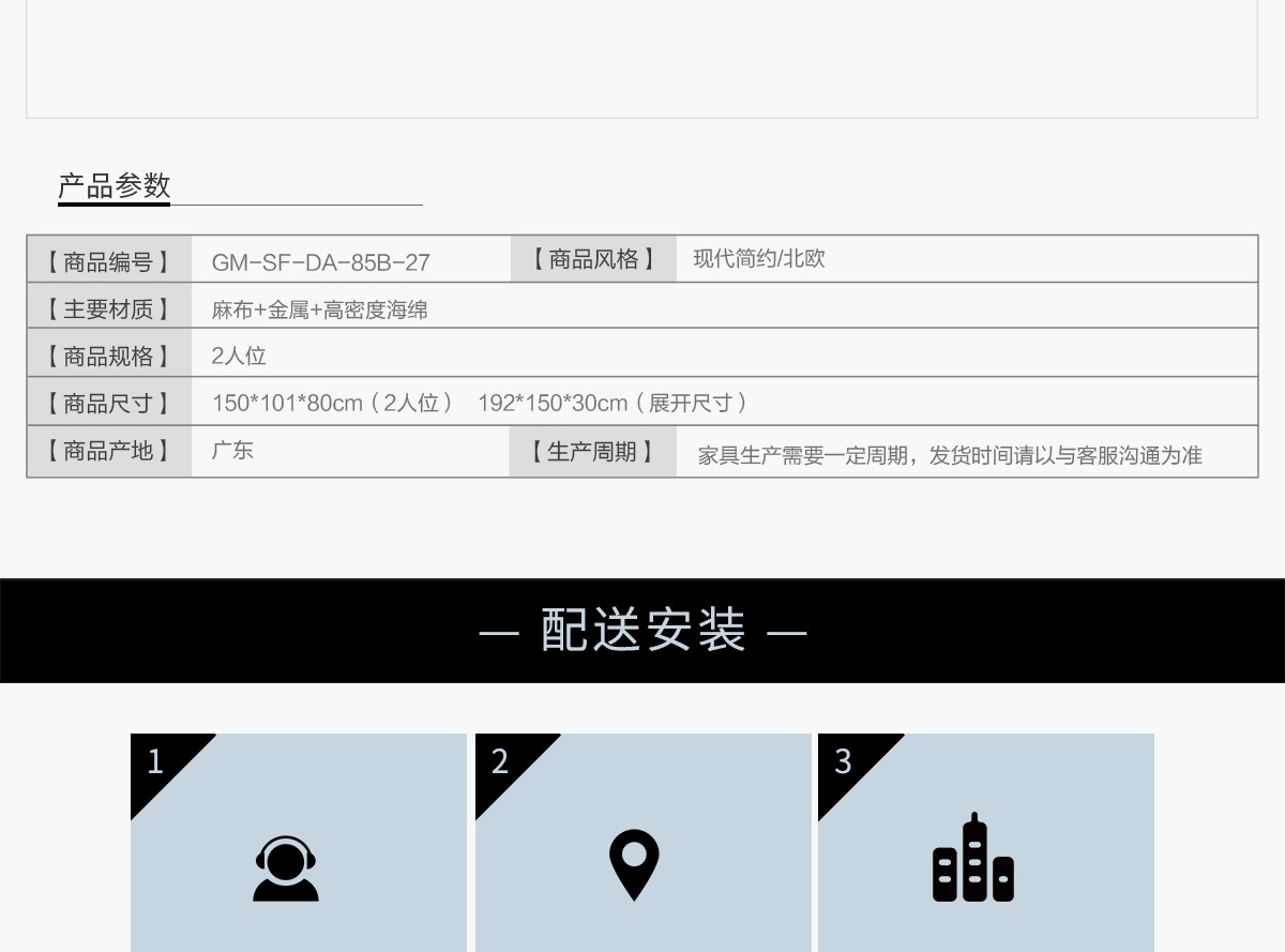 布藝沙發淺灰可拆洗現代簡約SF6806