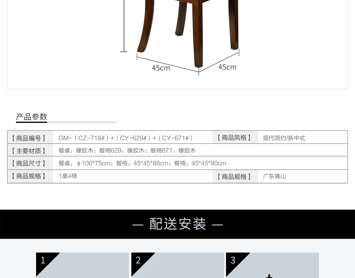 尺寸:餐桌(100*100*75)+餐椅(45*45*88)