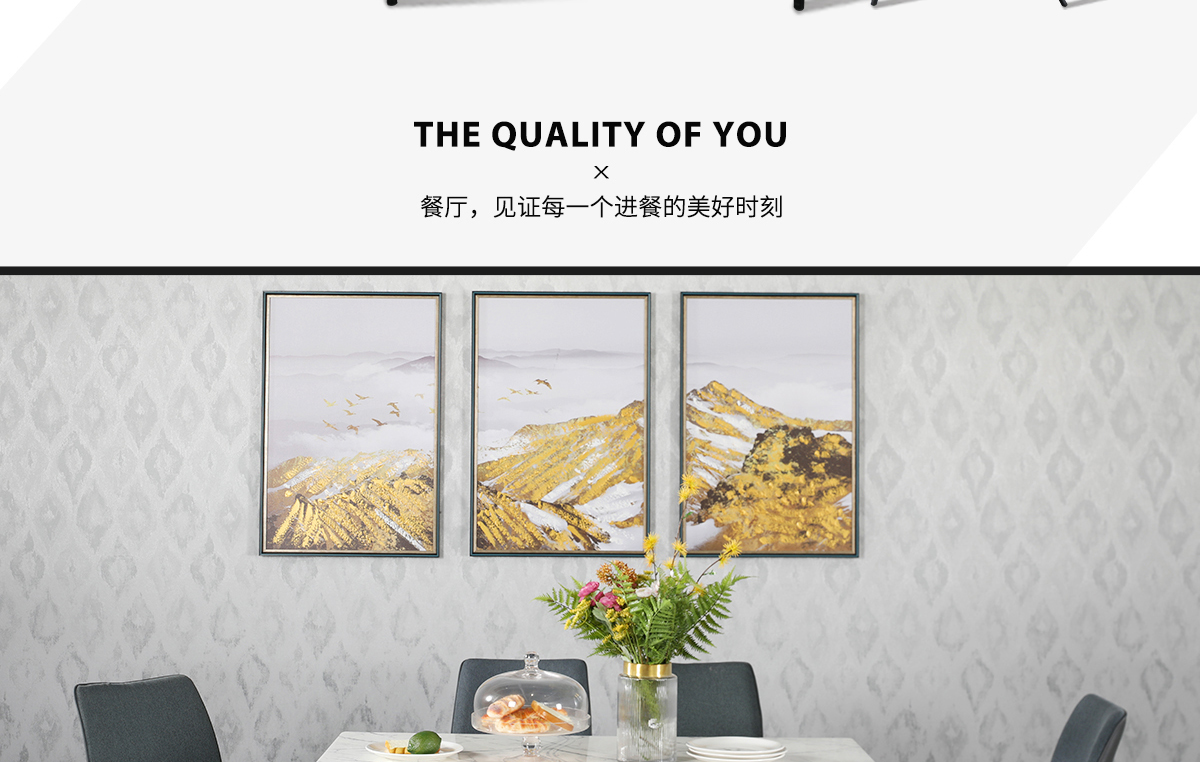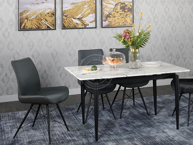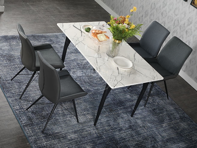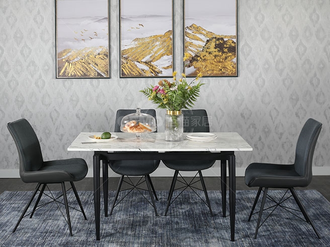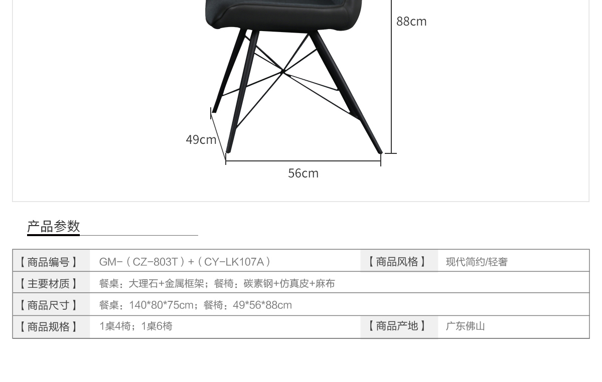 臺(tái)面材質(zhì):餐桌(大理石)+餐椅(棉麻布藝)