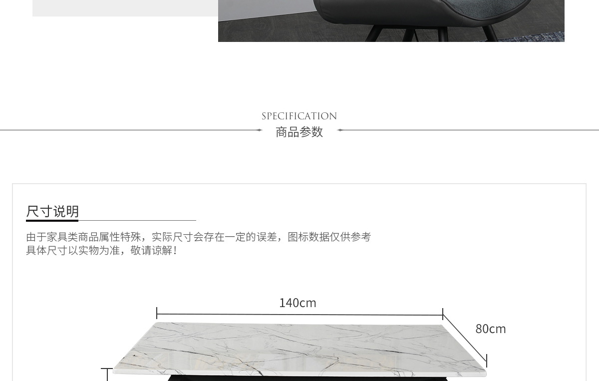 尺寸:餐桌(1400*800*750)+餐椅(49*56*88)