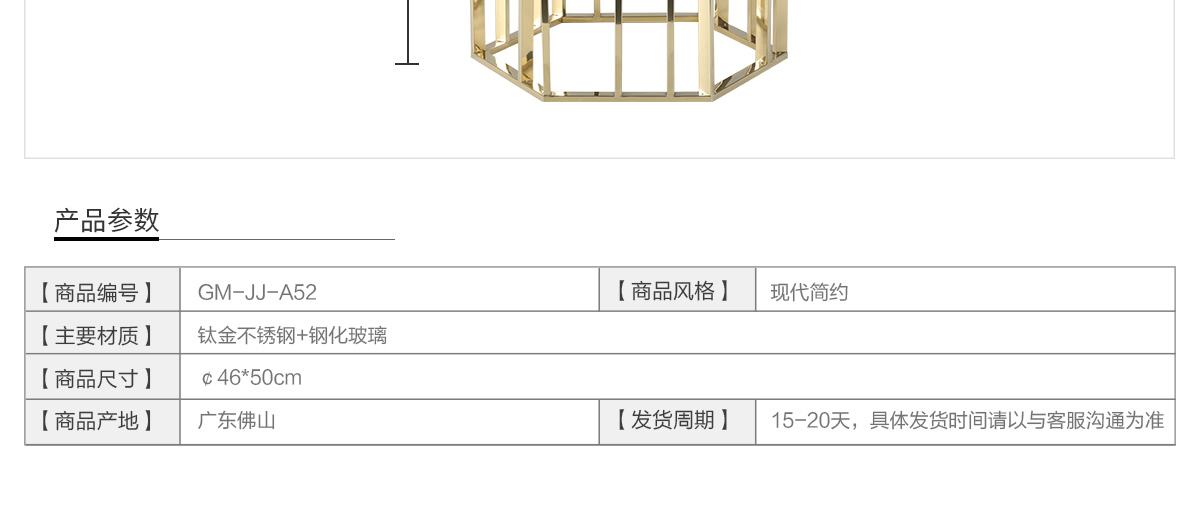名稱:不銹鋼玻璃美式輕奢茶幾A52