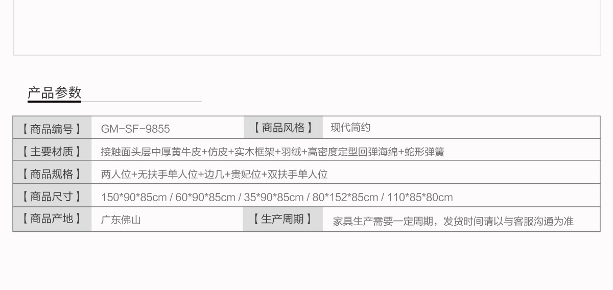 飾面材質(zhì):面料:接觸面頭層中厚黃牛皮