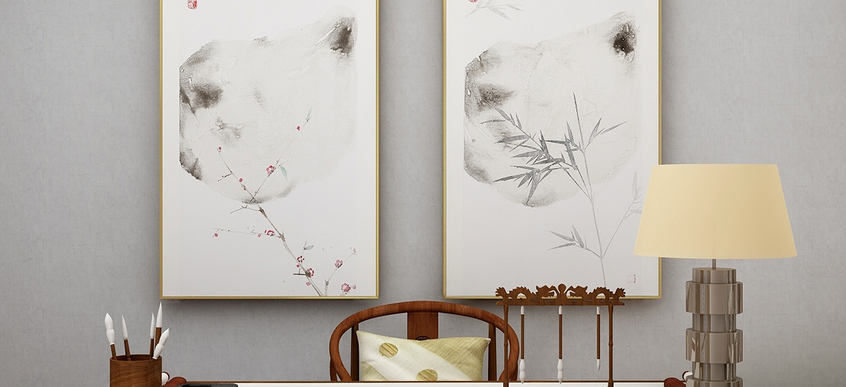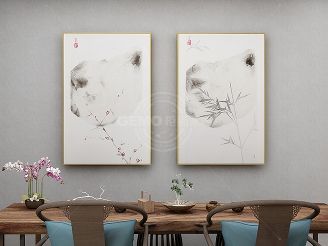 新中式入戶玄關床頭掛畫壁畫抽象畫-石頭記