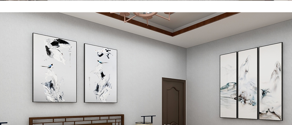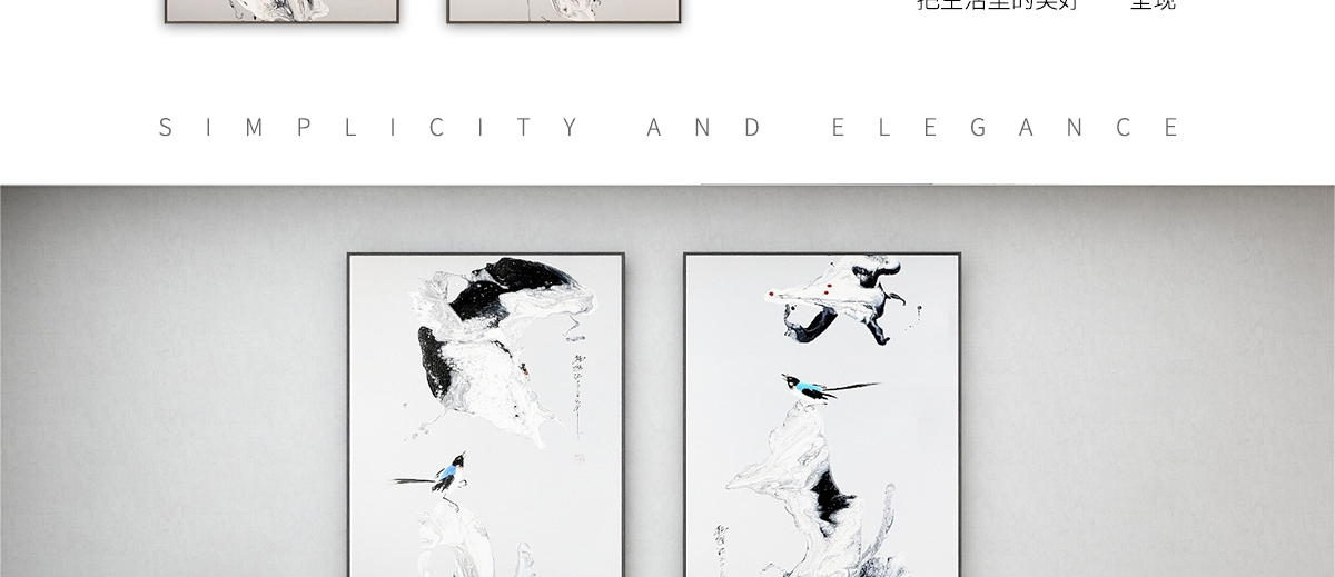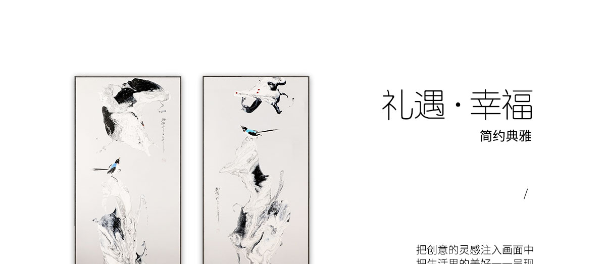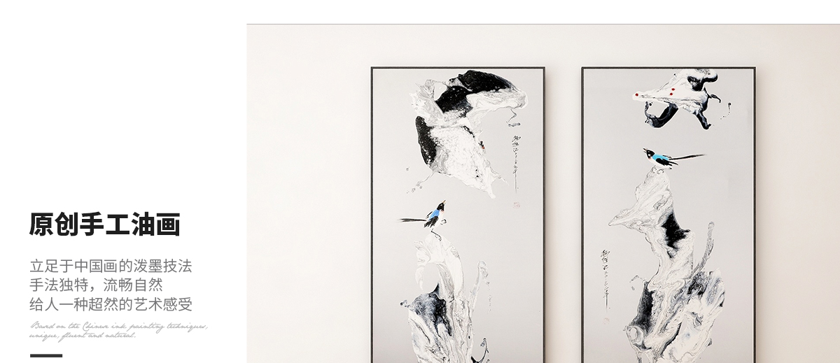 名稱:新中式餐廳床頭掛畫抽象壁畫-雙鳴報喜