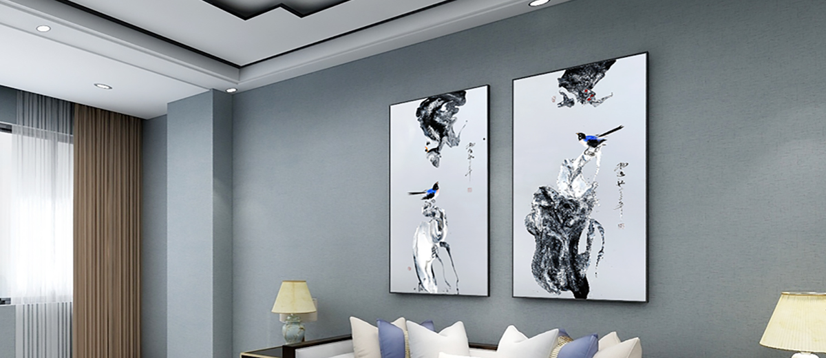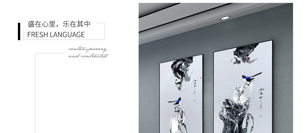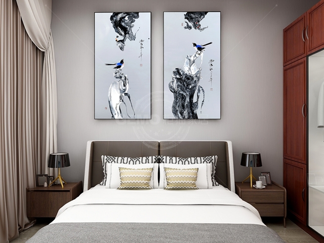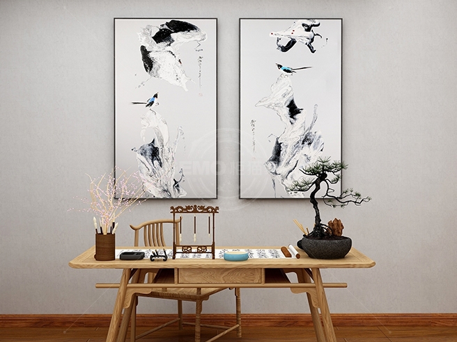 新中式餐廳床頭掛畫抽象壁畫-雙鳴報喜