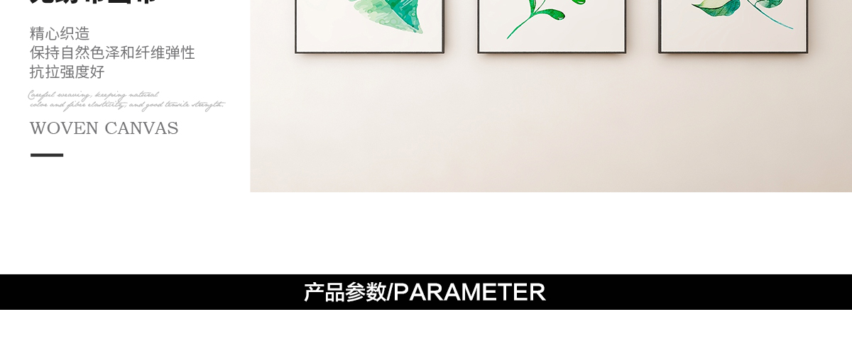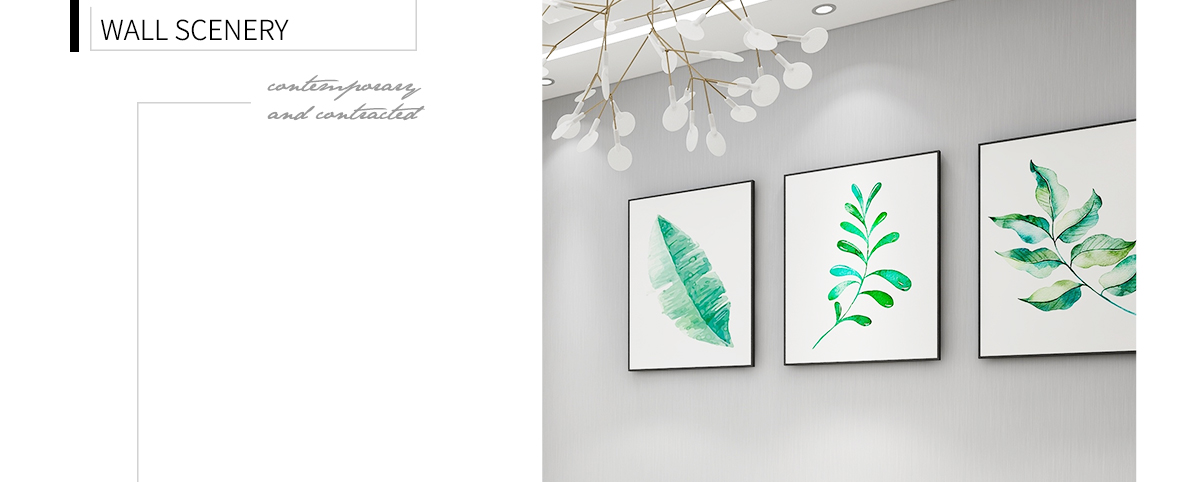名稱:北歐風格玄關壁畫臥室抽象藝術單幅三聯畫-小葉青青
