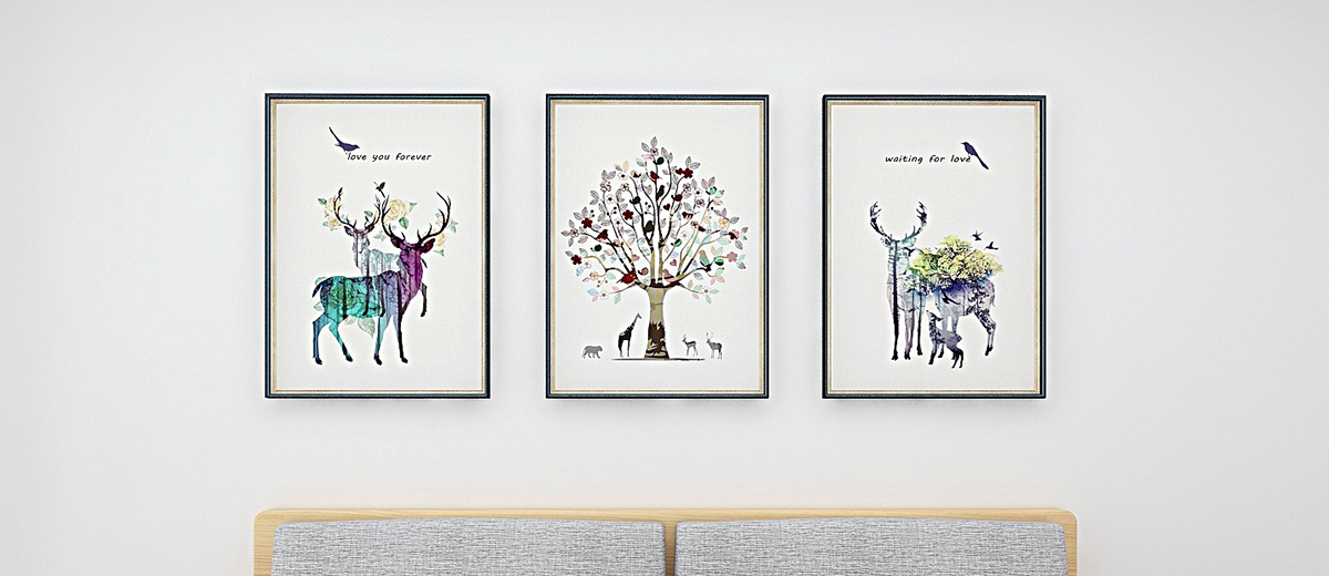 現代簡約餐廳壁畫招財風水壁畫-一鹿相送