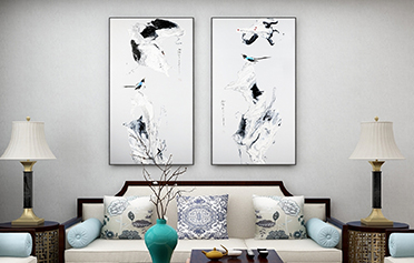 新中式餐廳床頭掛畫抽象壁畫-雙鳴報喜