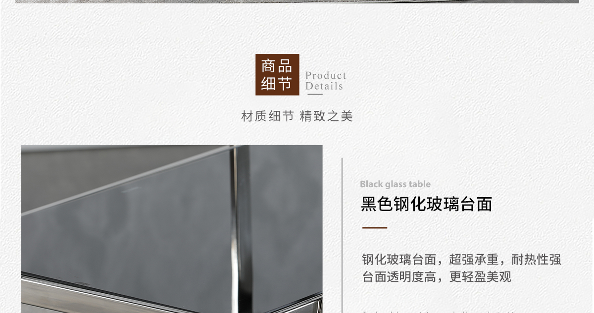 具體材質(zhì):鋼化黑璃+銀色不銹鋼