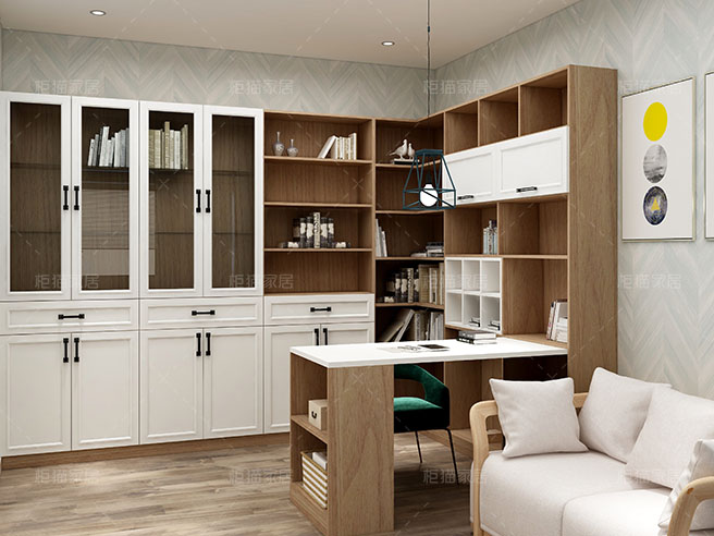 簡歐小戶型書房定制書柜|書桌椅一體