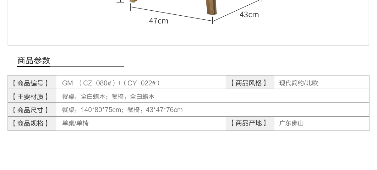 尺寸:餐桌:140*80*75/餐椅:43*47*76