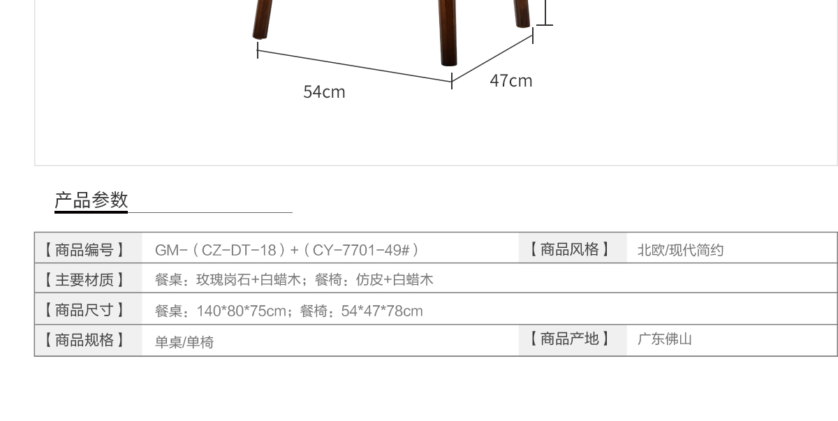尺寸:餐桌:140*80*75、餐椅:540*470*780