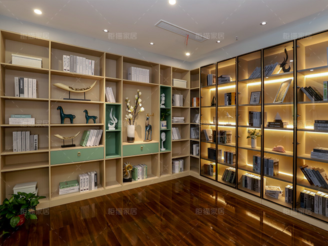 現代風格定制書柜整面墻書柜