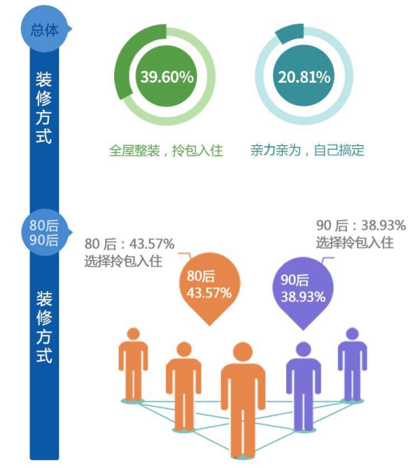 整裝是未來的發展趨勢,其商業模式符合政府出臺鼓勵商品房精裝修交付的政策。據《2018年中國家居整裝設計趨勢白皮書》顯示,在裝修方式選擇上,“親力親為,自己搞定”的比例為20.81%,“全屋整裝,拎包入住”的則為39.6%,其中,選擇“全屋整裝,拎包入住”裝修方式的,80后占據43.57%,90后占38.93%。那么,企業實現全屋整裝主要路徑有哪些呢?