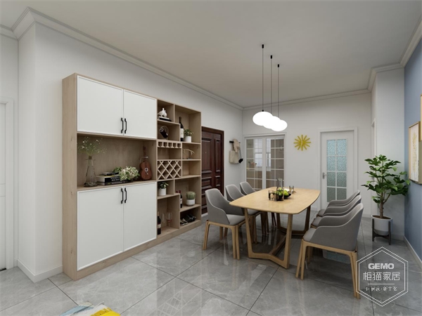 入戶:工作一天后,心里總有一個溫暖的歸處,那便是家。為了充分利用空間,在進(jìn)門的右手邊,設(shè)計師依墻打造了一款餐邊柜,儲酒、儲物,安放生活的繁雜,簡約而不簡單的餐桌餐椅,記錄了美味在舌尖的舞動。因為有家,生活,從來都不會缺少溫暖。