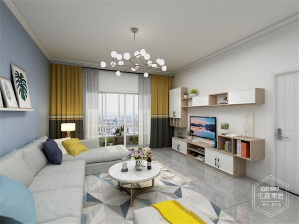 客廳:清新溫柔的淺色邂逅亮麗的黃色,總能給客廳帶來另一種味道,遵從去繁存簡的初心,在茶幾的選擇上,選用了這款建議三角茶幾,簡約時尚,符合現(xiàn)代人的審美需求。電視柜是依墻定制的組合柜體,既可以裝點客廳,也能有效增加家里的儲物空間,讓客廳變得秩序井然。