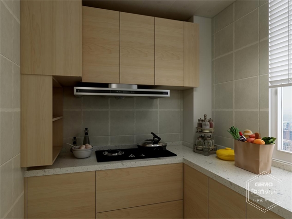 廚房:這一戶型的廚房空間不是很大,設(shè)計師根據(jù)實際,將L型植入廚房,洗、切、烹調(diào)依次進(jìn)行,生活的安心在此被打開,地柜與吊柜的組合,將空間藝術(shù)展現(xiàn)的淋漓盡致。暖色調(diào)的柜體搭配白色臺面,總能讓烹調(diào)者的心情更美好。