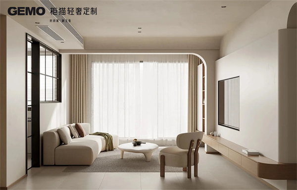 小戶型中的家具盡量選擇小型或者適中的。比如,選擇直排式3人位沙發,弧形或者長腿細腳型的茶幾,這種線條簡單的家具能給人一種輕盈的感覺,也能讓空間看起來更大,氛圍感也更強。