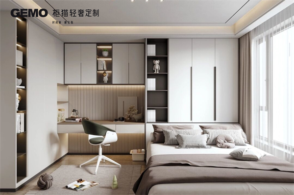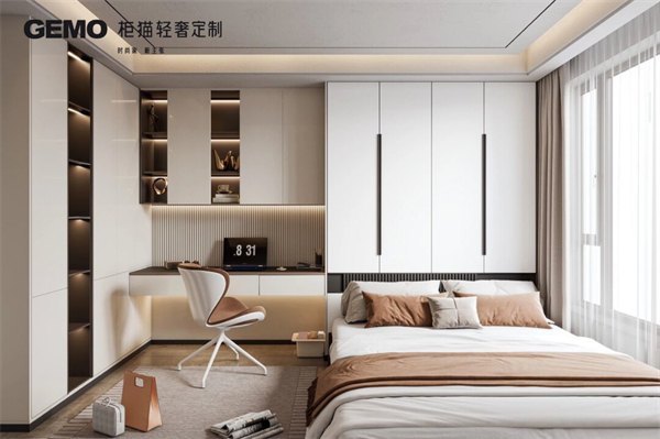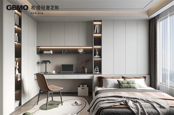 對于小臥室而言,墻面空間是非常寶貴的,我們可以利用墻面來安裝一些儲物柜、衣架、書架等等,這樣可以將地面空間最大化,讓臥室顯得更加寬敞。