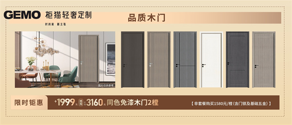 每個家庭都有不同的裝修風(fēng)格和需求,為了滿足大家的個性化需求,我們推出了多種款式的高品質(zhì)木門。現(xiàn)+1999可以搶購價值3160的同色免漆門2樘,幫您輕松省預(yù)算。