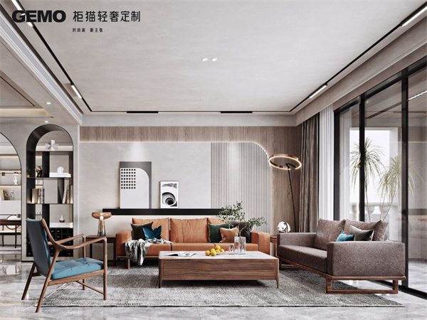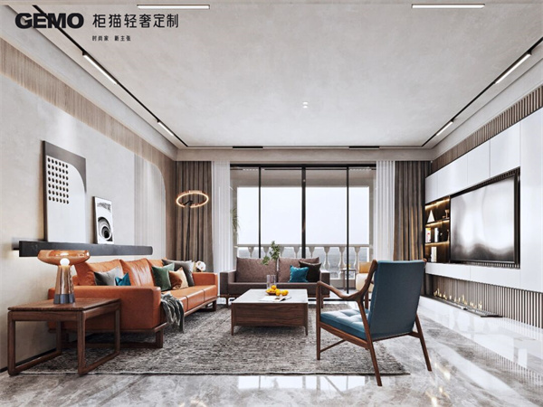 輕奢風格的色彩搭配以淡雅、柔和為主,常見的顏色有灰色、白色、米色等。同時,可以適當加入一些亮色作為點綴,如金色、橙色等,以增加空間的層次感。