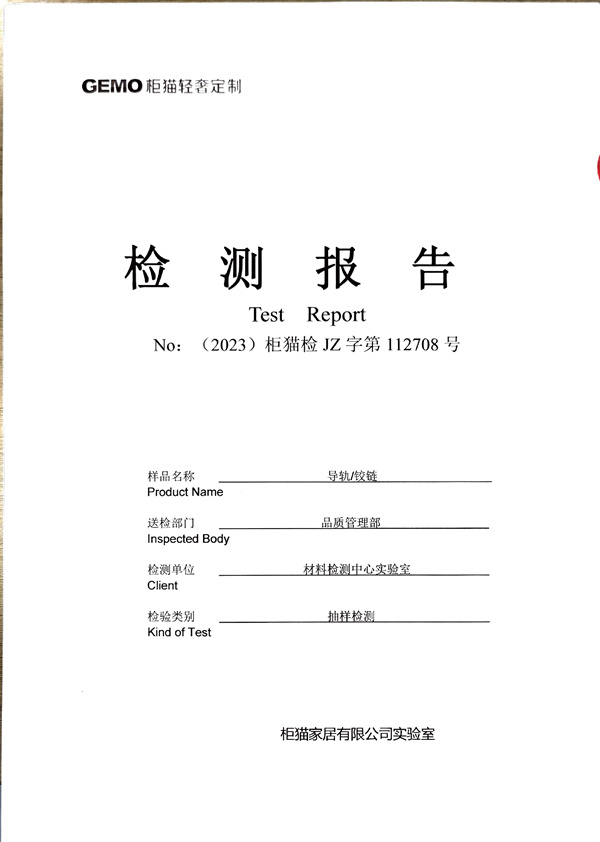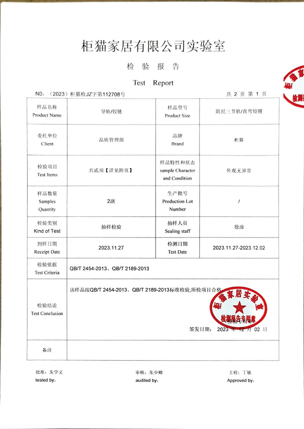 柜貓輕奢定制2023年11月導軌鉸鏈檢測報告