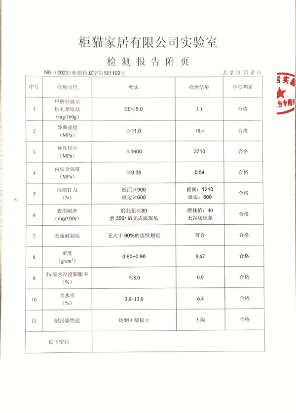 柜貓輕奢定制2023年7月星空時(shí)光飾面顆粒板柜體板實(shí)驗(yàn)室檢測(cè)報(bào)告