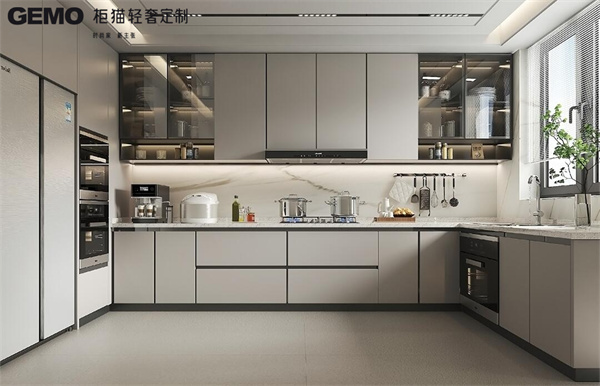 為了提高小廚房的使用效率,定制櫥柜可以采用多功能設(shè)計(jì)。例如,將洗碗機(jī)、烤箱等家電嵌入櫥柜中,不僅節(jié)省空間,還能保持廚房的整體美觀。