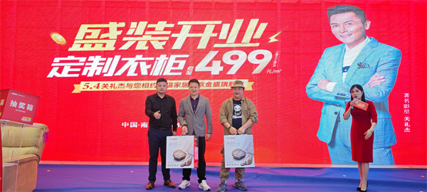 2024年5月4日,柜貓南京金盛旗艦店在江東門金盛國際家居商場隆重開業。香港著名影星關禮杰傾情助陣,現場氣氛熱烈,座無虛席。領導嘉賓和業主朋友共計200余人受邀參會,開業當天人氣爆棚,銷售額突破百萬!