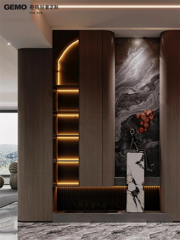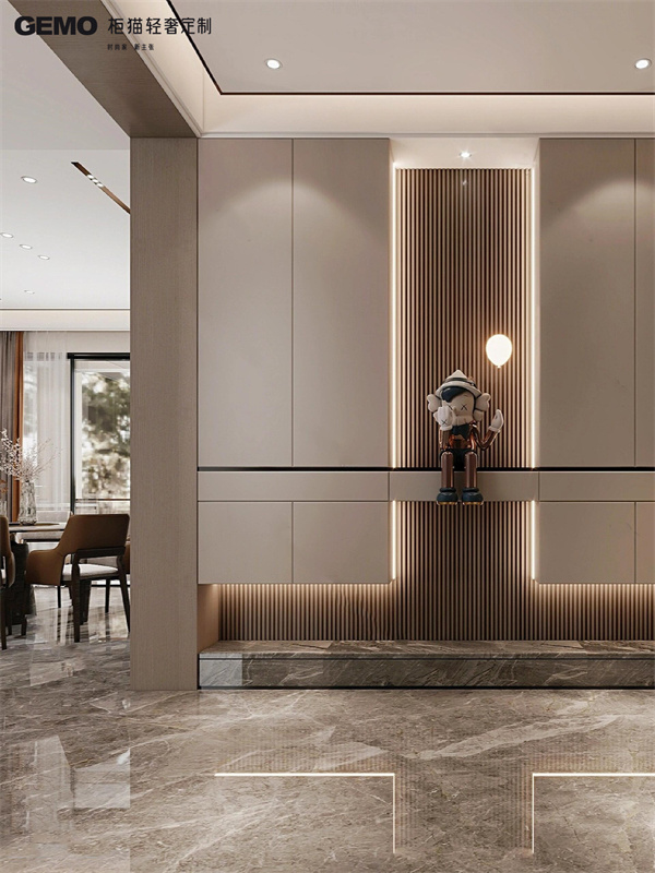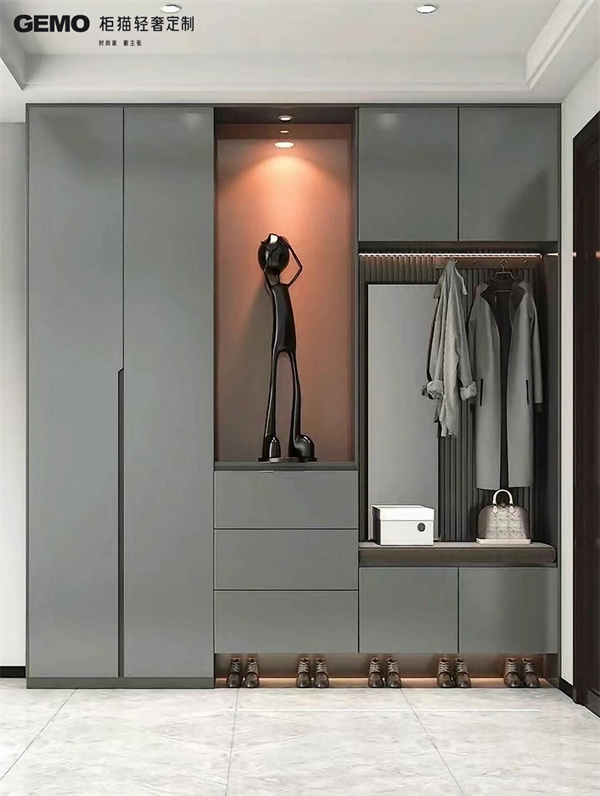 考慮到玄關柜的使用頻率較高,選擇耐用的材料至關重要。例如,可以選擇耐磨的木質面板、不銹鋼配件和防水涂層,以確保玄關柜的耐久性。