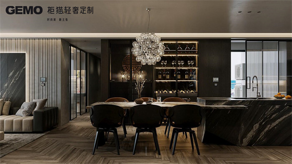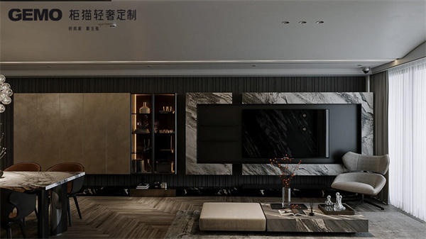 輕奢定制家具常用的材質如皮革、金屬、玻璃等,本身就帶有一定的色彩和光澤。在選擇家具顏色時,應考慮材質的特性,使得色彩與材質相得益彰。例如,光澤感強的金屬材質搭配淡雅的色調,可以增添空間的現代感;而溫暖的木質色調則更適合與自然色系的家具相結合,營造出溫馨舒適的氛圍。