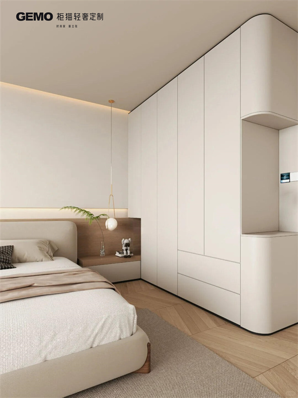 3、加入一些特別元素來提升美觀度。比如,選擇帶有鏡面的柜門可以在視覺上擴大空間感,同時方便日常著裝搭配。或者在衣柜的一角設置一個小巧的梳妝臺,將功能性與裝飾性完美結合。